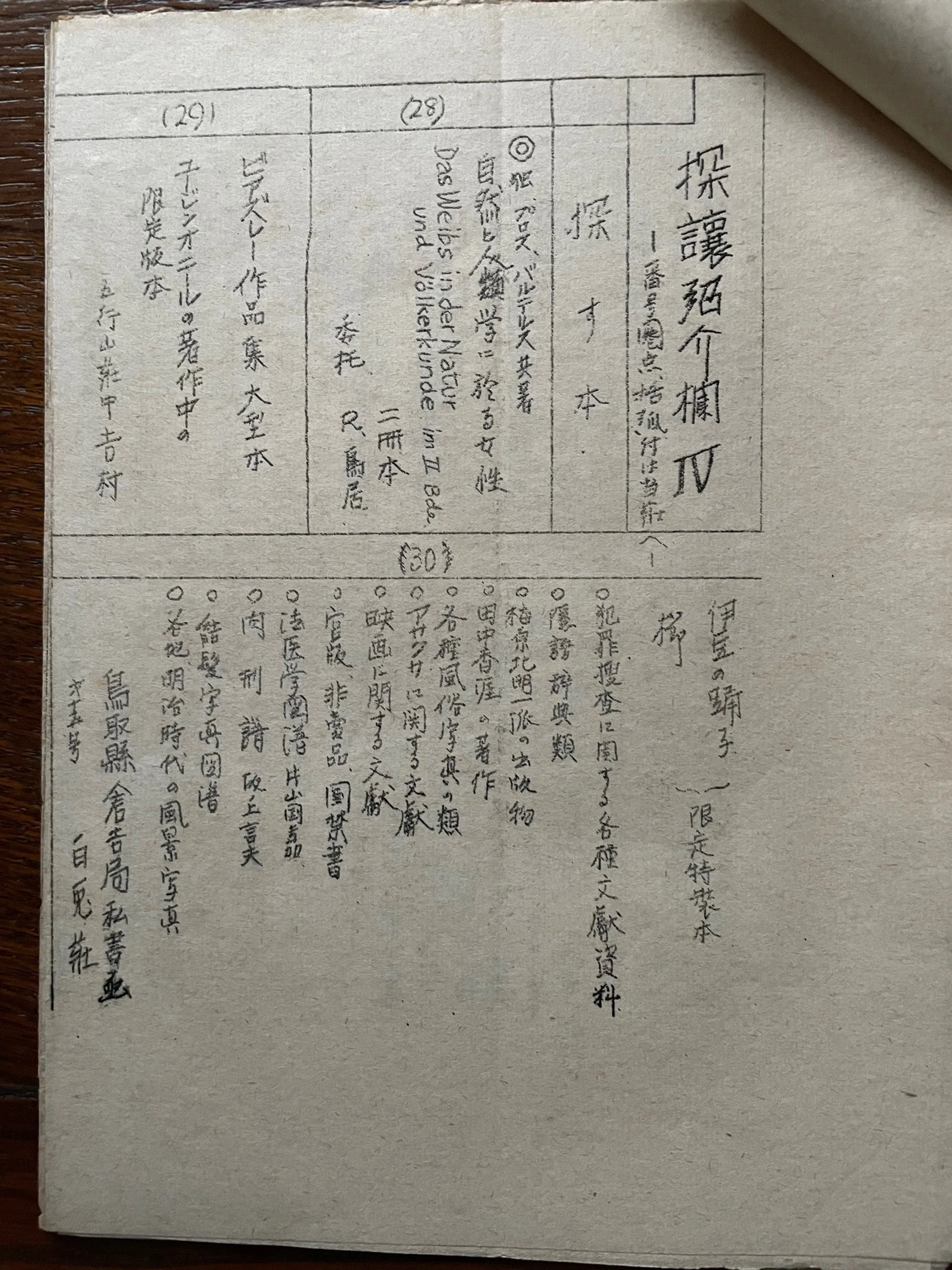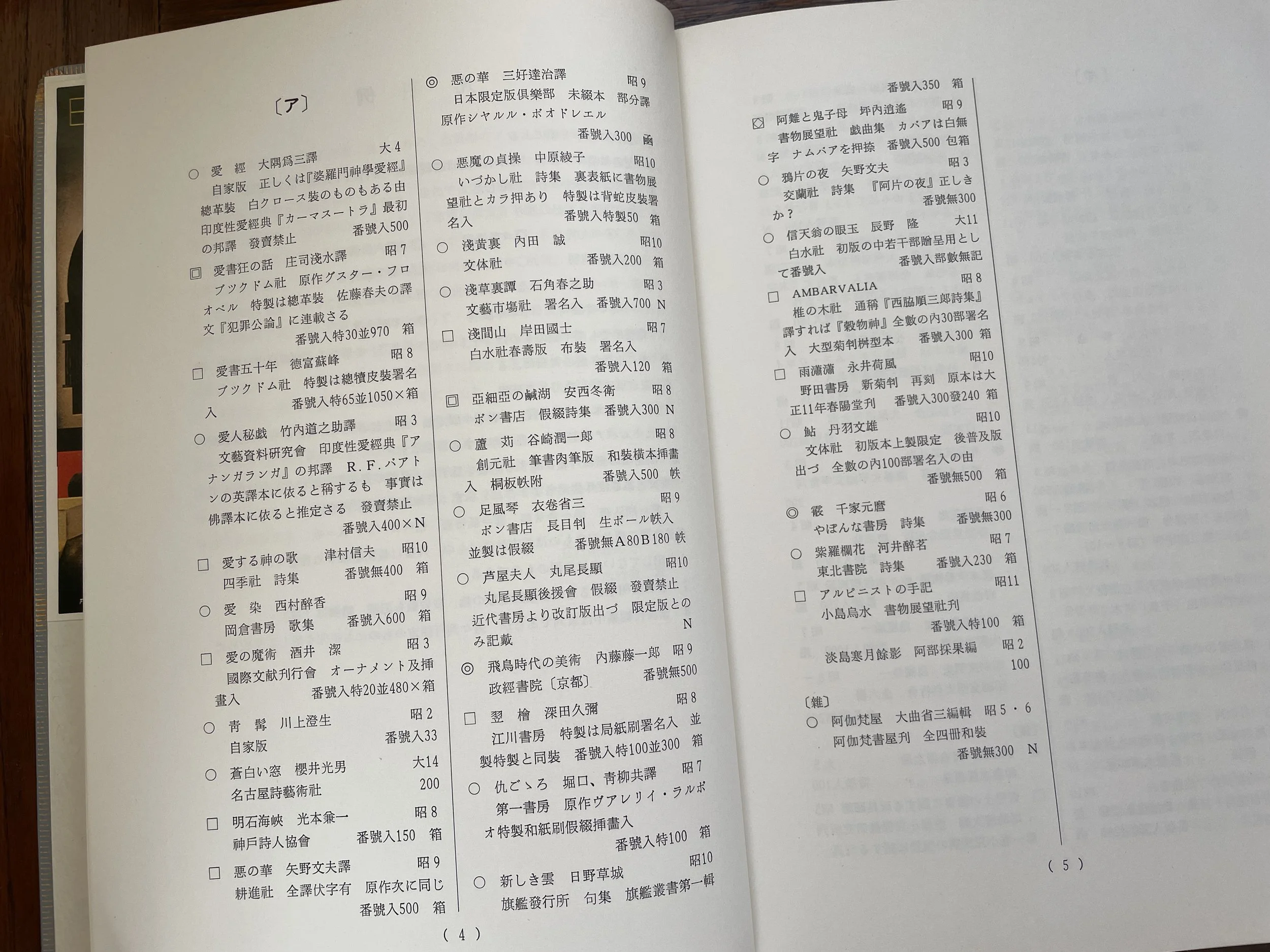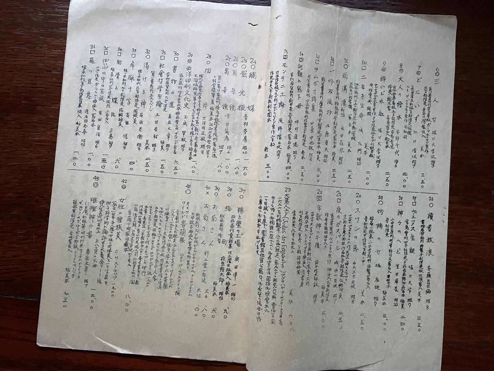 決して有名な古書店が作ったものではないこの脆弱な装本の目録は誰かが大切に保管してくださり長年の旅の末、不思議な事に手元にやって来た。