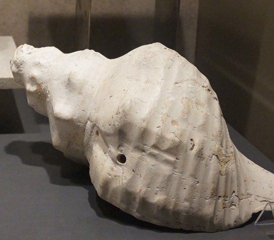 キキストリ(巻貝製):トップ画像は粘土製キキストリ。いずれもメキシコ国立人類博物館蔵