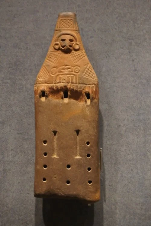 四つの指孔を持つ粘土製ダクト・フルート:メキシコ国立人類博物館蔵